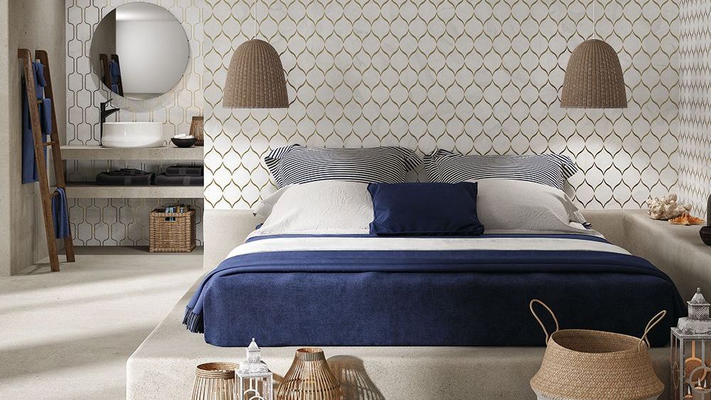 Right Wall: Arabescato Field Tile 10" x 20"